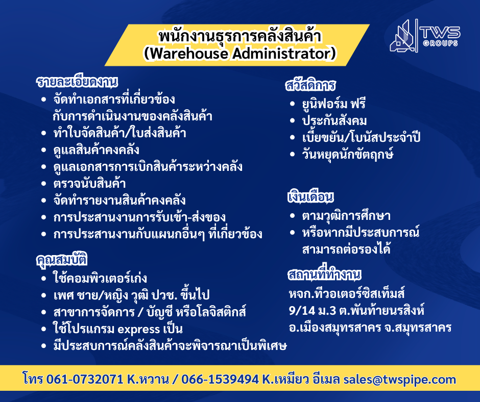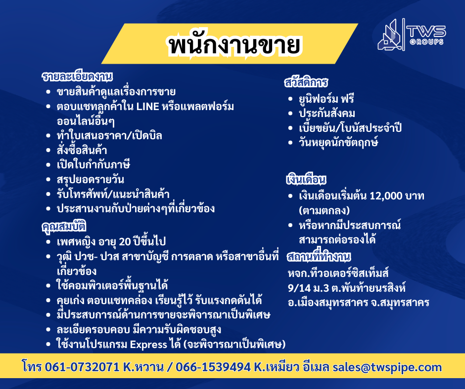 เปิดรับสมัครพนักงานหลายตำแหน่ง ท่านที่สนใจร่วมงานกับเรา